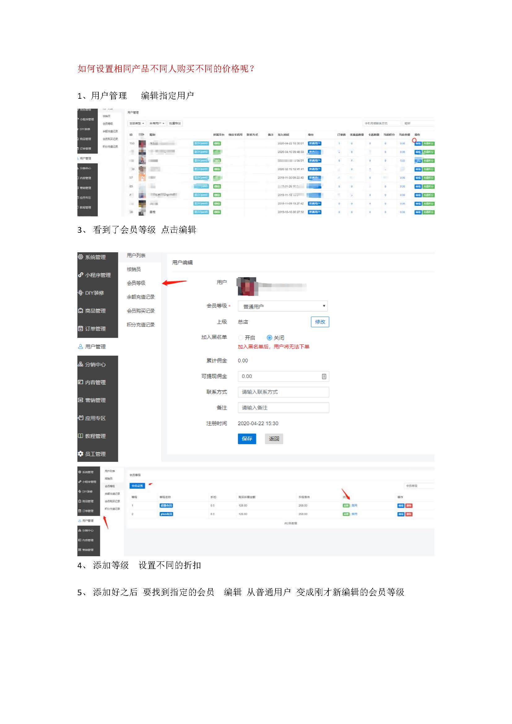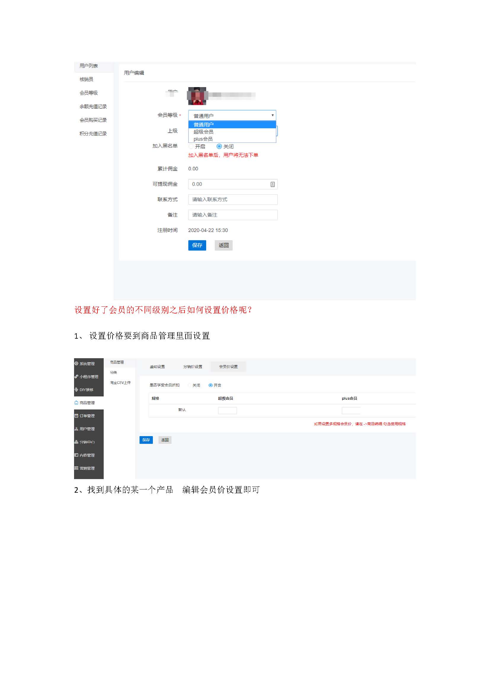 小程序商城分销会员价格后台操作